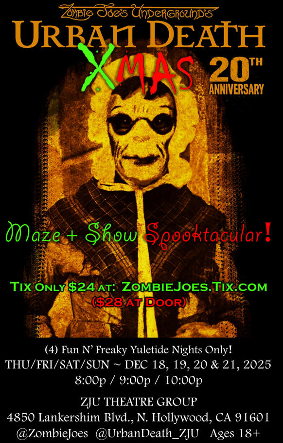 Zombie Joes Underground Theatre presents POEFEST Edgar Allan Poe RAVEN Zombies Joe's Poe's Poes Theater ZJU 4850 Lankershim Blvd North Hollywood NoHo CA 91601 818-202-4120 poefest.com poe fest festival E.A. SHADOW OF THE RAVEN tell tale heart bells pit pendulum raven los angeles san fernando valley poefest.org poefest.net Masque Red Death